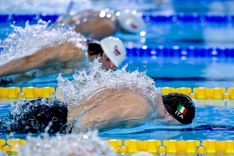 100 RANA SOLD OUT. Le batterie dei 100 rana valgono, come sempre, una selezione interna per le azzurre. Due posti in semifinale per quattro atleti e se li prendono il campione del mondo dei 50 in vasca lunga Simone Cerasuolo e il campione olimpico e primatista italiano (55"63) Nicolò Martinenghi. Il 22enne di Imola - tesserato per Fiamme Oro ed Imolanuoto, preparato da Cesare Casella - scarica tutta la sua potenza ed è secondo con il personale in 56"21 (precedente 56"28), con un passaggio notevole in 26"21 ai 50 ed un ultimo venticinque abbastanza trattenuto in 15"29. Il 26enne di Varese e vice campione europeo in carica - tesserato per CC Aniene, seguito da un anno al centro federale di Verona da Matteo Giunta - è quinto in 57"08, come il tedesco Melvin Imoudu, e la sensazione di avere energie da spendere nel pomeriggio. Masticano amaro i piemontesi e compagni d'allenamento, allievi entrambi di Antonio Satta, Ludovico Blu Art Viberti (Fiamme Oro/CN Torino) settimo in 57"15 e Gabriele Mancini (Marina Militare/CN Torino) ottavo con il personale di 57"19 che ritocca il 57"21 registrato a Genova un mese fa. Miglior crono per l'olandese Caspar Corbeau 55"54.Dimezzati, dopo il forfait dell'ultima ora di Lisa Angiolini, i 100 rana femminili vengono illuminati da Irene Burato che mette da parte l'emozione e accede alla semifinale con il nono riscontro cronometrico, scendendo per la prima volta il carriera sotto al muro dell'1'06. La 18enne vicentina di Thiene e altra debuttante in Nazionale - tesserata per Team Veneto e da sempre allenata da Davide Bizzotto - nuota in 1'05"54 (precedente 1'06"26), come l'irlandese Ellie McCartney, ed entra nella top ten delle performer italiane. Davanti a tutte c'è l'estone Eneli Jefimova in 1'03"44.