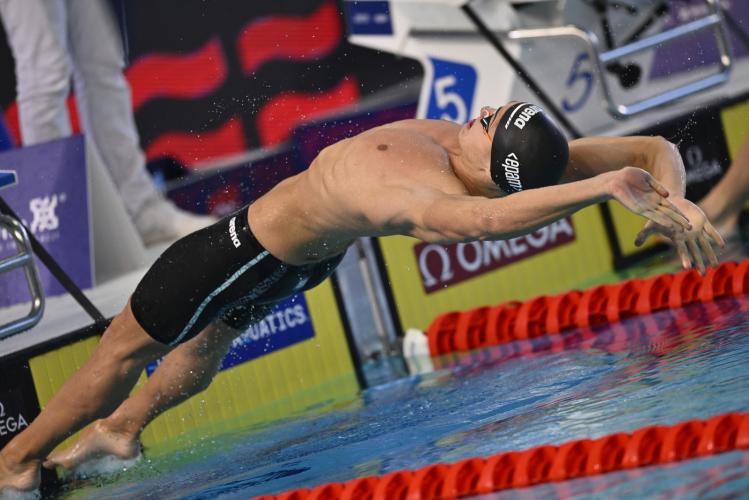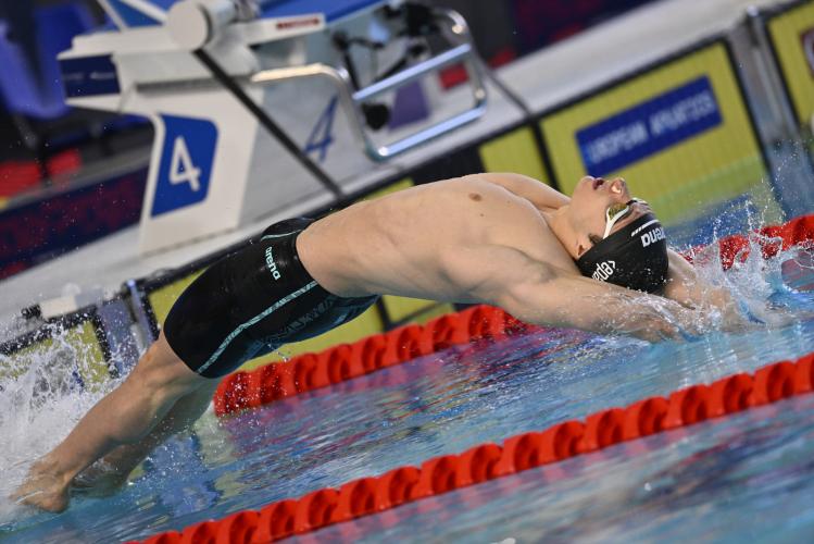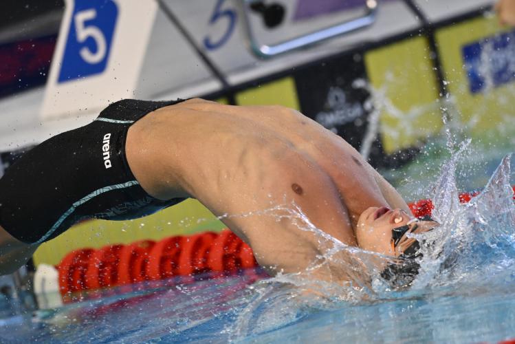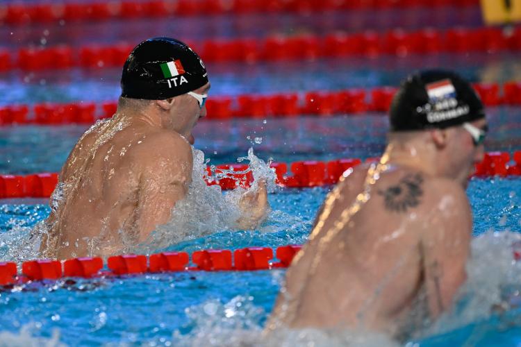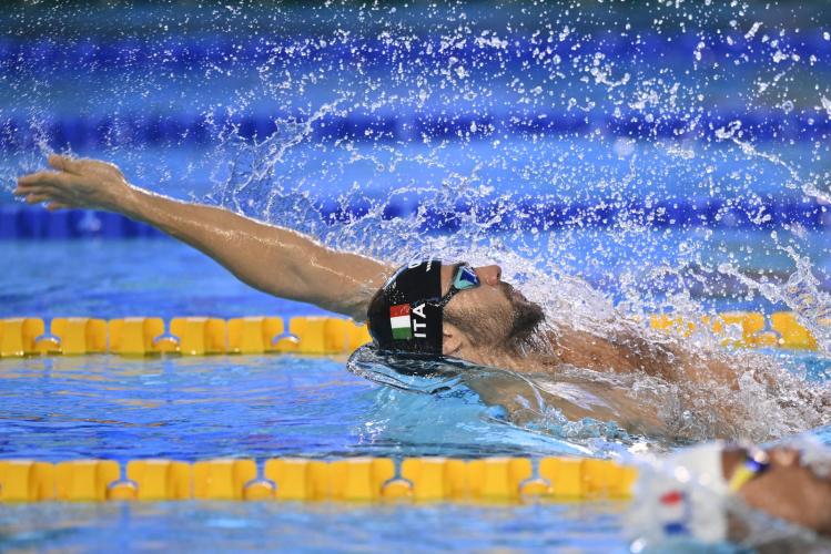100 dorso. Marce alte nei 100 dorso con due posti in semifinale per quattro azzurri. Se li prendono il primatista italiano (49"04) Lorenzo Mora e il campione olimpico Thomas Ceccon al debutto in gara individuale, divisi da tre centesimi ed una posizione. Subacquee tirate a pennello, e che da sempre fanno la differenza in vasca corta, per il 27enne emiliano e bronzo europeo in carica - tesserato per Fiamme Rosse e VVFF Modena, seguito a Bologna da Arianna Barbieri - che nuota il terzo tempo in 50"15; lo bracca il 24enne di Schio - tesserato per Fiamme Oro e Leosport, preparato a Verona da Alberto Burlina - cui basta spingere fino ai 50 (23"97), per poi controllare e chiudere senza affanni in 50"18. Nei sedici ci sono anche Francesco Lazzari (Ispra 69), alfiere della mista mixed d'oro, decimo in 50"72, e Christian Bacico (Esercito) undicesimo in 50"85. Davanti a tutti c'è il britannico Oliver Morgan in 49"55.