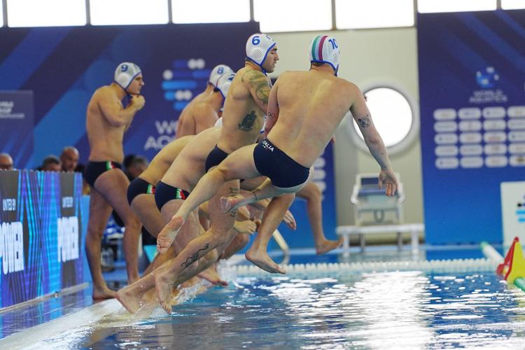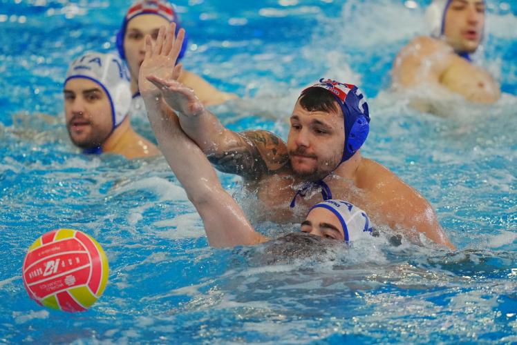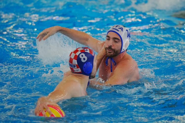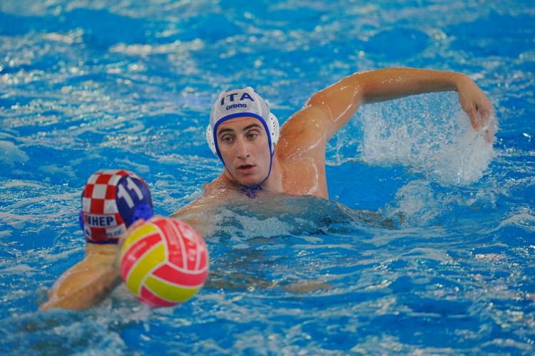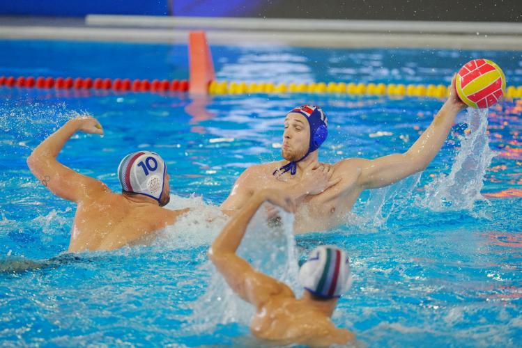CRONACA. Match subito nel vivo con gli azzurri che lo sbloccano dopo un minuto in superiorità con Guerrato. La Croazia pareggia con il rigore di Butic, ma il Settebello risponde colpo su colpo, trova altre tre espulsioni e passa ancora in più con Di Somma dal perimetro per la rete che chiude 2-1 il primo parziale. Bene la difesa con Nicosia autoritario in porta che salva quattro extraplayer croati. Lazic pareggia subito in doppia superiorità, ma Dolce ha la mano calda e insacca dai cinque metri la prima rete in parità numerica (3-2). Lo stesso 7 azzurro commette fallo grave e Lazic piazza il bis dall'angolo (3-3), prima del nuovo vantaggio di Iocchi Gratta che sfrutta una controfuga in più e punisce Bijac. Kharkov e Gianazza spingono ancora in più (5-4); ancora il 12 naturalizzato russo su rigore, Cannella in più (6-5), Toncinic, il bis di Iocchi e Brubnjak (Campopiano fuori con sostituzione) in extraman per il 7-7 di metà gara.