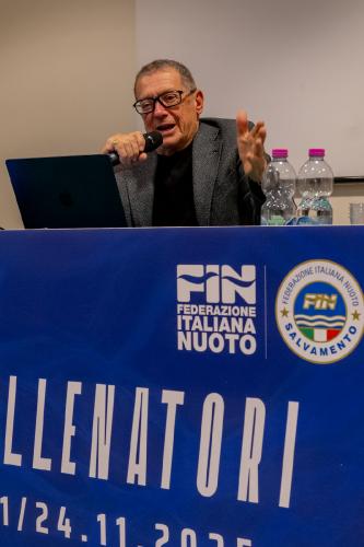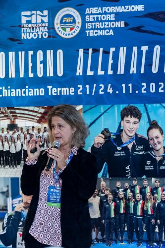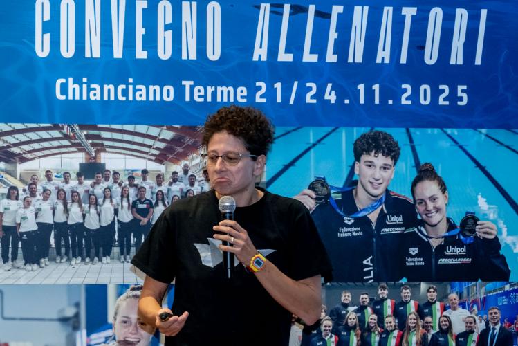 IL SALUTO DEL VICE PRESIDENTE DELLA FIN ANDREA PIERI. “È un onore portare i saluti del Presidente Paolo Barelli, di tutta la Federazione a voi qui presenti ed a tutto il nostro mondo federale. Nuoto artistico, salvamento, tuffi, nuoto e pallanuoto sono le discipline che rendono grande questa Federazione e direi la rendono grandissima in tutto il mondo. Siamo di fronte all'inizio di un quadriennio importante, quello che ci porterà a Los Angeles. In questo settore specifico di fronte a delle regole che disciplinano la nostra attività con tutte le problematiche che voi molto meglio di me conoscete. Quindi la vostra attenzione e la vostra partecipazione sono di notevole importanza, perché possono ancora portarci tanto lontani. È una strada lunga, faticosa quella che dobbiamo seguire, ma le vostre capacità, la vostra dedizione e direi il vostro amore per questa disciplina, ci aiutano ad affrontarlo. Quello che noi pratichiamo è uno sport con la s maiuscola. Sport è tutto, è vero, vale anche per le altre discipline, ma quelle acquatiche lo sono ancora di più perché tutto parte dal sacrificio delle famiglie che portano i bambini nelle nostre piscine, dalle società che a stento riescono a portare avanti le attività perché l'energia è sempre più cara. Per arrivare ai nostri campioni che lavorano, si sacrificano, si allenano ogni giorno e non hanno sicuramente quello che i loro colleghi in altri sport hanno. Grazie per essere intervenuti, grazie per la vostra attenzione, per quello che fate e sono sicuro farete da ora fino ai prossimi giorni”.