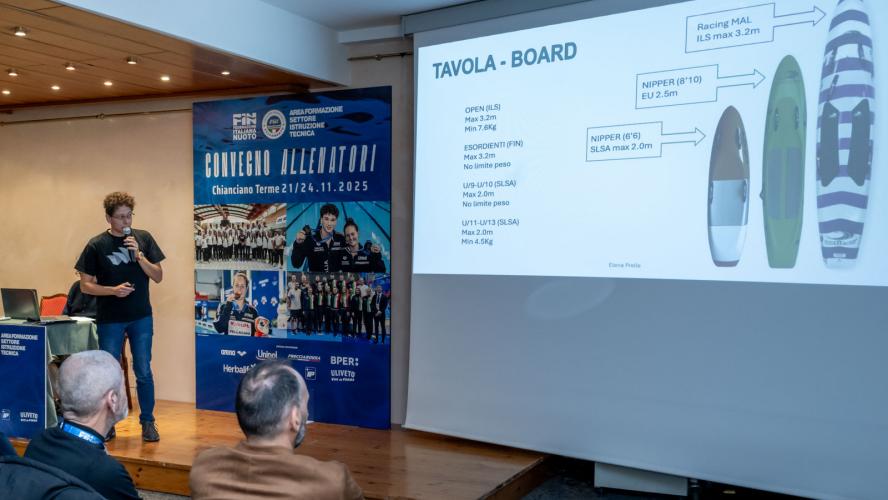NUOTO PER SALVAMENTO. “Vedo con soddisfazione una bella platea – afferma il direttore Del Bianco - ricca di numeri ma anche di qualità. Sono con noi il vice presidente Andrea Pieri, il coordinatore tecnico scientifico delle squadre nazionali Marco Bonifazi e il vice presidente della ILSE Giorgio Quintavalle, il direttore tecnico della nazionale Massimiliano Tramontana e il presidente del CR Lazio Giampiero Mauretti, che ringrazio e saluto. Il salvamento è una curva esponenziale nel tempo, tanto per i risvolti sociali che per quelli agonistici. È un settore in continua crescita ed evoluzione. Esistono le basi per un confronto. Buon corso e buon lavoro a tutti”.