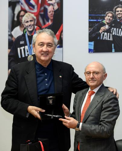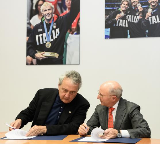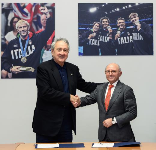 Il presidente Paolo Barelli e il presidente della Provincia di Caserta, Anacleto Colombiano, hanno sottoscritto a Roma, presso la sala consiglio della Federnuoto, un protocollo d'intesa volto a garantire supporto tecnico-specialistico della FIN per la riqualificazione dello Stadio del Nuoto di viale Gallicola, nel capoluogo campano, chiuso dall'aprile scorso. Presenti anche il segretario generale Antonello Panza e il consigliere federale e responsabile del centro di alta specializzazione Felice Scandone di Napoli, Luca Piscopo.