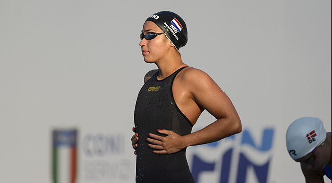 Promettono spettacolo nel pomeriggio i 50 stile libero femminili. Dopo le batterie in testa l'olandese Ranomi Kromowidjojo, a caccia del terzo successo nel 54esimo Sette Colli dopo i 50 farfalla e i 100sl. La 27enne di origini surinamesi - oro olimpico a Londra 2012, argento iridato a Kazan e campionessa europa in carica - nuota in 24''74; la inseguono la danese Pernille Blume in 24''85 e la connazionale Tamara Van Vliet in 24''97; ottava Lucrezia Raco (CC Aniene) in 25''43, tre centesimi in più del primato personale.