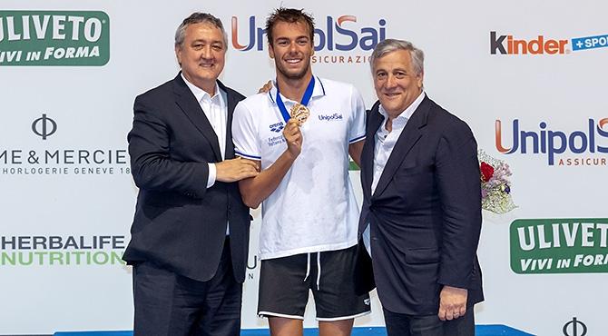 La prima medaglia azzurra di giornata è quella conquistata da Cristopher Ciccarese (Fiamme Oro Roma - CC Aniene) che sale sul secondo gradino del podio nuotando i 200 dorso in 1'58"77, lontano dai suoi migliori tempi. "Conquistare una medaglia a casa mia, mi rende sempre felice - afferma il nuotatore romano - ho fatto lo stesso crono dei Giochi del Mediterraneo". Vince il mistista ungherese Adam Telegdy, pluricampione nazionale, in 1'58"17.