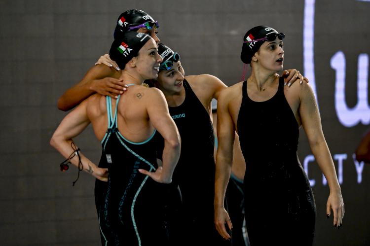 VELOCITA' D'ORO E D'ARGENTO. Sempre protagonista la velocità azzurra. Quattordici anni dopo Stettino, la 4x50 stile libero maschile torna sul tetto d'Europa di nuovo in Polonia. Una cavalcata trionfale aperta da Leonardo Deplano (20"88), terzo e incollato al croato Jere Hribar (20"70) e all'ucraino in Nikita Shemert (20"84); poi capitan Lorenzo Zazzeri in 20"56 porta la squadra davanti a tutti e il debuttante Giovanni Guatti (20"67) insieme a Thomas Ceccon (20"79) conservano il primato eguagliando il record assoluto di 1'22"90 firmato da Santo Yukio Condorelli, Andrea Vergani, un giovane Zazzeri e Alessandro Miressi per il bronzo iridato ad Hangzou 2018.