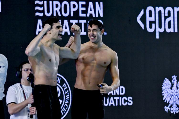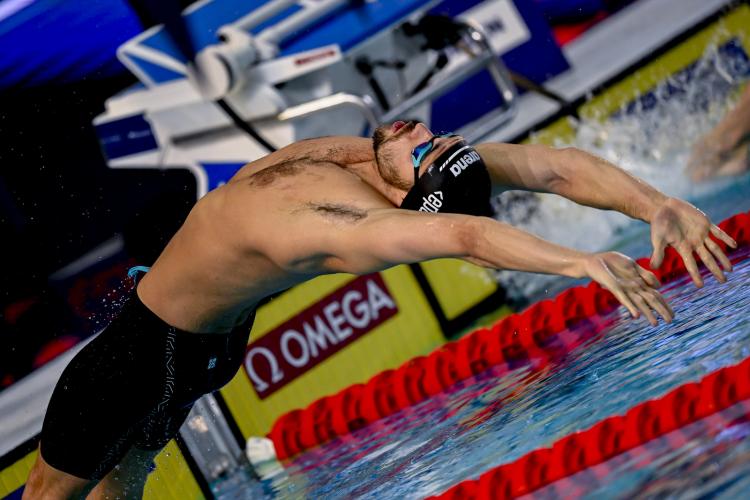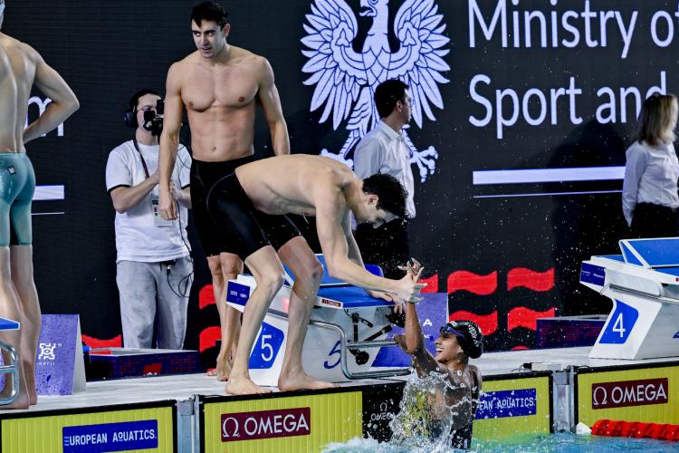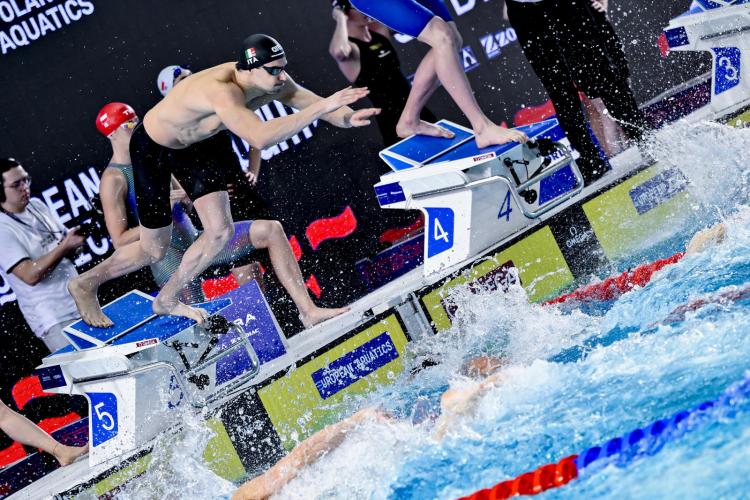 100 dorso. Convincono decisamente gli azzurri: il campione olimpico e primatista del mondo in lunga Thomas Ceccon (Fiamme Oro/Leosport) e il bronzo europeo in carica Lorenzo Mora (Fiamme Rosse/VVFF Modena) non lasciano spazio a cali di tensione, nuotano entrambi in 50"07, come il francese Mewen Tomac, e si qualificano alla finale con il quarto riscontro cronometrico. "Ho avuto qualche problema all'avvio, sono quasi scivolato - spiega il 24enne di Schio, allenato al centro federale di Verona da Alberto Burlina e oro con la 4x50 sl - Sono dettagli che devo correggere per la finale. Sono abbastanza fiducioso. Sarà una bella battaglia. Non sono al meglio, nuoterò per vincere. Sono felice per Mora: ci stiamo allenando insieme a Lublino; lui è il primatista italiano e sarà uno dei favoriti". Gli fa eco l'amico Lorenzo, sempre a suo agio in vasca corta: "Thomas mi aveva chiesto di nuotare in finale vicino a lui ed io ho colto alla lettera il messaggio - spiega il 27enne emiliano, preparato a Bologna da Arianna Barbieri - Domani bisognera scendere almeno sotto ai 50" per provare a prendere qualcosa di interessante. Nulla è impossibile". Il più veloce è il britannico Oliver Morgan in 49"62 ma in mezzo secondo ci sono otto atleti: sarà un atto conclusivo dal pronostico aperto e che promette spettacolo.