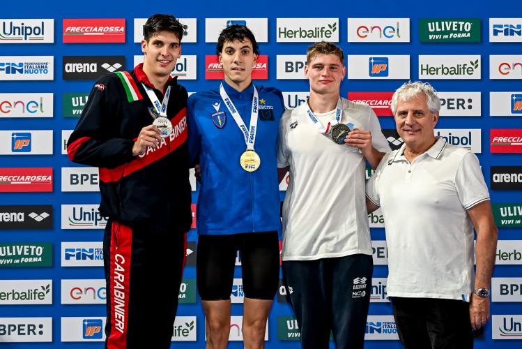 In chiusura la vittoria di Davide Marchello negli 800 stile libero. Bene il 24enne di Roma - tesserato per Esercito e Aurelia Nuoto, allievo di Fabrizio Antonelli al centro federale di Ostia - che tocca in 7'38"29. Sul podio anche Matteo Lamberti (Carabinieri/Gam Team) in 7'39"03 e Tommaso Griffante (Leosport) in 7'39"83.