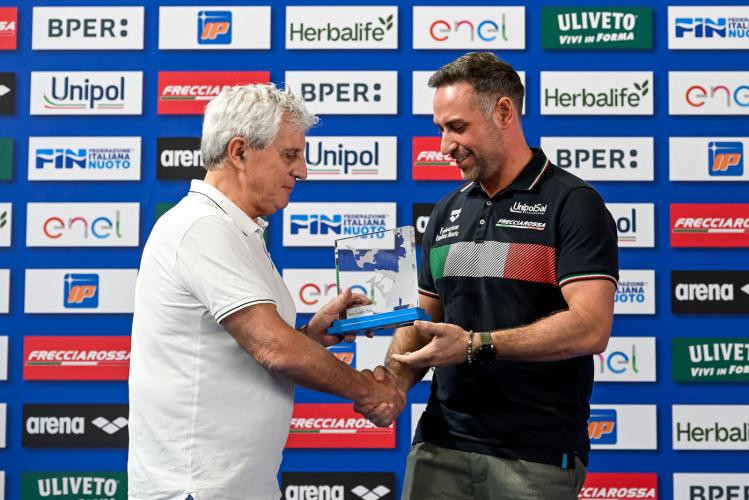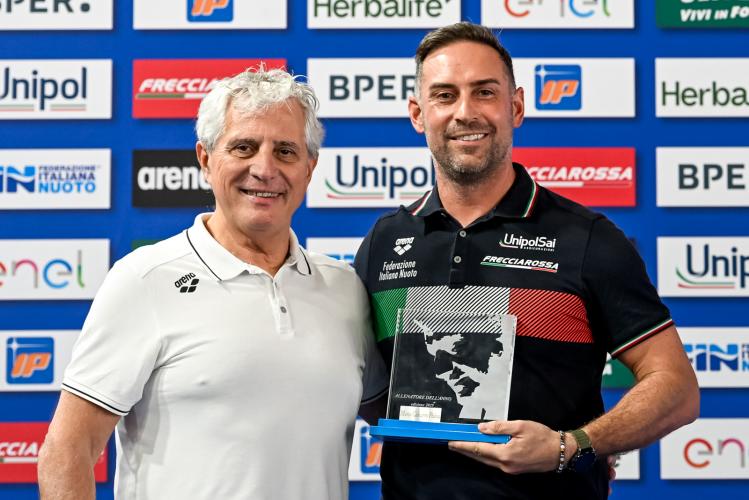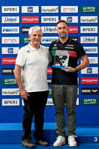 Oggi, con tutto il nuoto riunito in occasione degli assoluti Frecciarossa, ha ricevuto dal direttore tecnico della nazionale Cesare Butini il meritato riconoscimento giunto alla decima edizione. Pedoja ha preceduto col 50% di preferenze - espresse da una giuria composta da ex campioni, dirigenti e giornalisti - i colleghi Alberto Burlina e Fabrizio Antonelli. Complimenti!