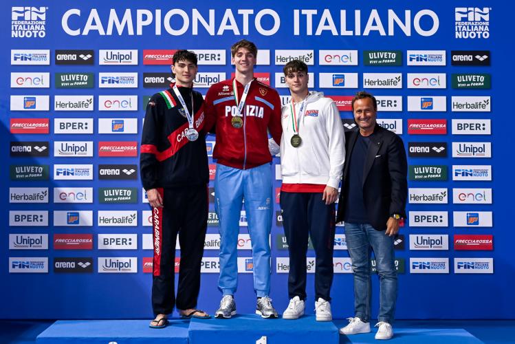 Nei 100 stile libero, infine, si rilancia Alessandro Miressi che scala una posizione per la squalifica di Luca Serio (Fiamme Gialle) per falsa partenza. Il 27enne e primatista italiano - tesserato per Fiamme Oro e CN Torino, allenato da Satta - vince in 46"77, precedendo Lorenzo Ballarati (Carabinieri/CC Aniene) in 47"11 e Mirko Chiaversoli (Aurelia Nuoto) in 47"14.