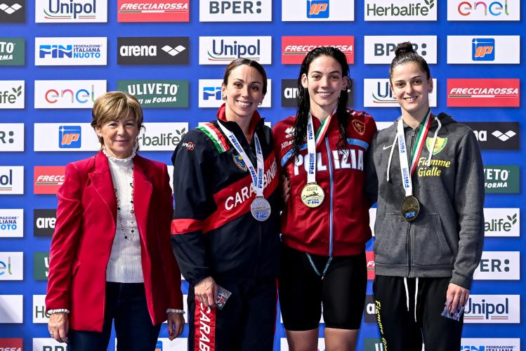 Il proscenio è tutto di Lisa Angiolini che nei 200 rana si prende titolo e in 2'18"92 record italiano, diventando la prima donna italiana a scendere sotto il 2'19: depennato il 2'19"17 di Francesca Fangio (Esercito/In Sport Rane Rosse), seconda in 2'21"01. Clamorosa la gara della 30enne senese - tesserata per Carabinieri e Virtus Buonconvento, allenata da Gianluca Valeri - che passa velocissima in 1'06"86, con un ultimo cinquanta da sprinter in 36"21: sbriciolato il primato personale di 2'21"92 siglato a Livorno nel 2024. "Dal momento in cui ho deciso di rinunciare agli europei di Lublino per la febbre, che sempre becco in questo periodo, la mia testa era tutta rivolta agli Assoluti - racconta una commossa Angiolini - Sentivo di star bene in acqua e volevo prendermi qualcosa di importante. Il record italiano è stupendo e mi ripaga del duro lavoro svolto in tutti questi anni". Sul gradino più basso del podio sale la talentuosa umbra Lucrezia Mancini (Spoleto Nuoto) in 2'22"41. Con questo crono Angiolini sarebbe stata bronzo agli europei dietro alla tedesca Anna Elendt (2'18"16) e alla britannica Angharad Evans (2'18"90).