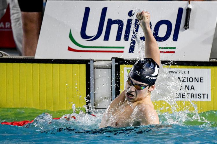 Carlos D'Ambrosio non è al top della condizione fisica, per una preparazione tutta incentrata sugli Assoluti, ma mentalmente è un campione; e dopo il successo con record italiano nei 200 stile libero, si prende anche lo scettro nei 100 farfalla, specialità non proprio nelle sue corde, impreziosendolo con il primato personale. Il 19enne campano ma vicentino d'adozione - tesserato per Fiamme Gialle e Fondazione Bentegodi, preparato da Luca De Monte - vince in 50"78 e depenna il 51"53 stampato ai Criteria nel 2025.