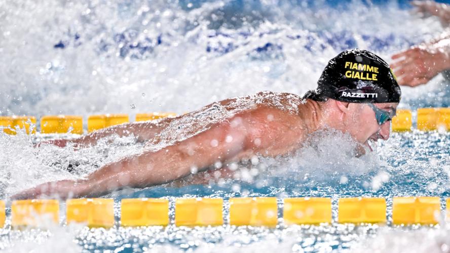 I 100 farfalla, che hanno aperto il programma della mattina, preannunciano battaglia in apertura di pomeriggio. Comanda un arrembante Alberto Razzetti che, dopo aver vinto nella doppia distanza e ed essersi il pass continentale anche nei 200 misti vinti da Jacopo Barbotti, intanto piazza un notevole 52"01. Il 27enne ligure di Lavagna ma ormai di casa a Livorno - tesserato per Fiamme Gialle e My Sport, allenato da Stefano Franceschi - nuota la seconda prestazione personale, a sette centesimi dal 51"94 siglato un anno fa, con un passaggio estremamente controllato in 24"34 e un ritorno più sostenuto in 27"67; alle spalle del polivalente azzurro, il vincitore dei 50 Lorenzo Gargani (RN Florentia) con il personale in 52"18 (precedente 52"34) e un sornione Federico Burdisso (Tvn) in 52"30.