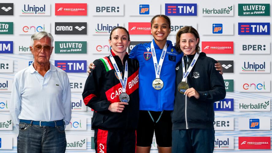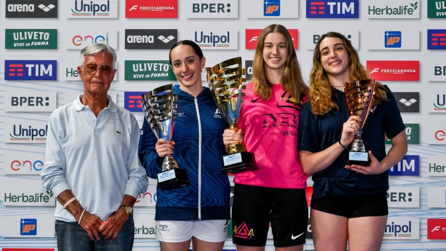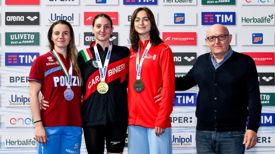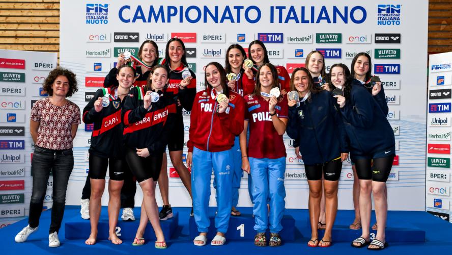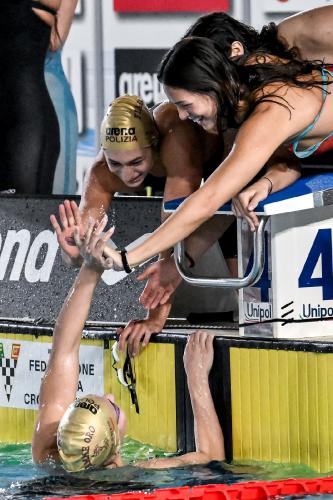 FIAMME ORO DA RECORD. In chiusura il record italiano di società della 4x200 stile libero delle Fiamme Oro. Bianca Nannucci (1'58"49), Sofia Morini (2'01"25), Matilde Biagiotti (2'00"57) e Antonietta Cesarano (2'00"33) chiudono in 8'00"64 e migliorano l'8'01"02 siglato dalla CC Aniene nel 2015.