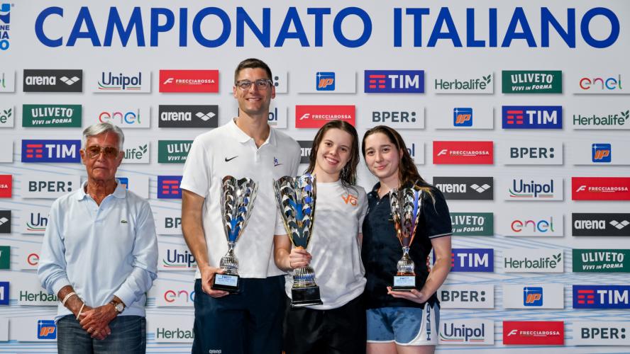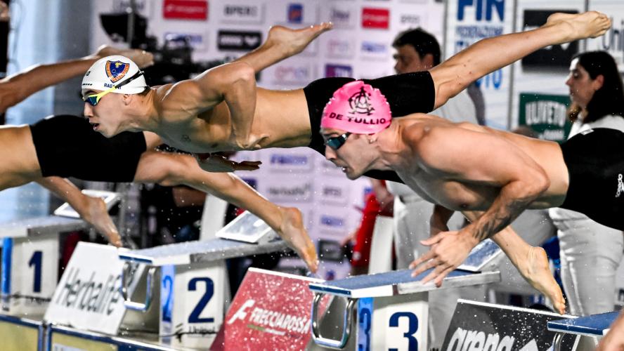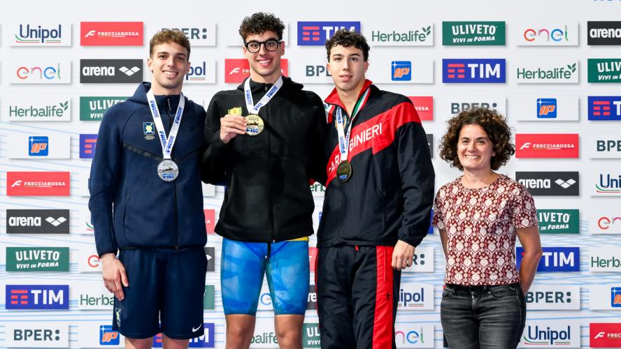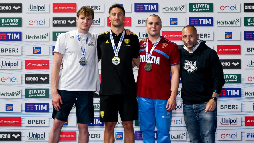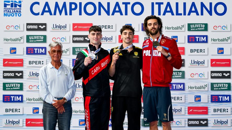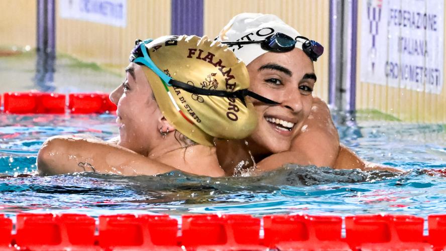Spettacolare la finale dei 200 dorso con lo scalpo che se lo prende il talentuoso Daniele Del Signore, scendendo per la prima volta in carriera sotto all'1'57. Bellissima la gara del 18enne di Genzano di Roma - tesserato per Fiamme Gialle e CC Aniene, preparato da Mirko Nozzolillo - che controlla il passaggio a metà gara (57"31), poi aumenta le frequenze con un ultimo rientro in 29"75, per un crono d'autore di 1'56"89, che cancella l'1'57"94 siglato agli Eurojrs a Samorin. In scia al dorsista un ottimo Matteo Venini (Carabinieri/In Sport Rosse) con il primato personale in 1'57"00. Sconfitto, anche a causa di una condizione fisica non ottimale, il campione olimpico dei 100 Thomas Ceccon. Il 25enne di Schio e primatista italiano (1'55"71) - tesserato per Fiamme Oro e Leosport, allenato al centro federale di Verona da Alberto Burlina - passa velocissimo in 55"33 ma poi perde potenza e fluidità non andando oltre un 1'57"19 per lui "normale". "Oggi ho ottenuto il massimo: titolo, pass per gli europei e battere Thomas che è un campionissimo - racconta Del Signore che sale dal decimo al quinto posto tra i performer italiani - Dedico questo successo al mio allenatore, alla mia famiglia e a tutti quelli che mi vogliono bene. E' una grande giornata per me". Nessun rimpianto per Ceccon: "Il piano tattico l'ho cambiato prima del via: all'inizio volevo passare piano e poi salire di frequenza; poi ho effettuato il contrario e non è andata bene. Adesso ho bisogno di tornare a casa, staccare un po' e poi tornare a fare l'atleta". A margine l'addio dell'ex primatista italiano Matteo Restivo - bronzo europeo a Glasgow 2018 - che da tempo si è dedicato alla professione di medico: resterà un esempio per aver portato parallelamente ad alto livello la carriera agonista e quella universitaria.