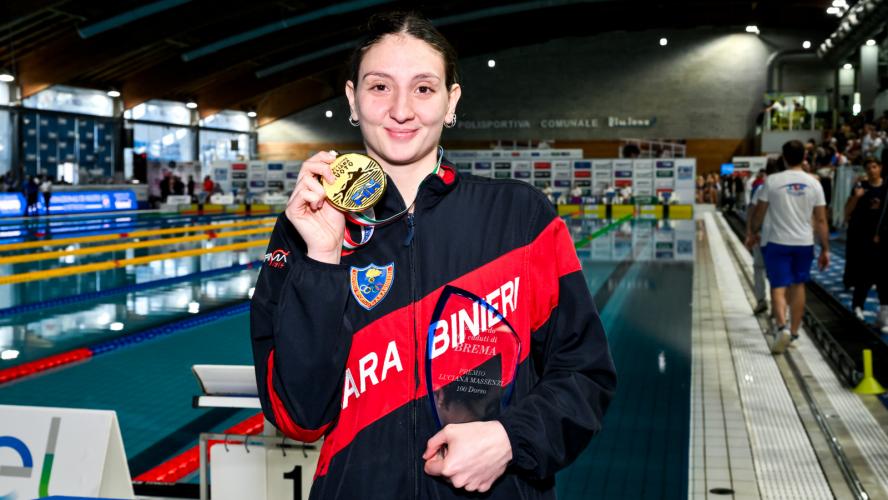 Cerca una nuova ambasciatrice, dopo il ritiro di Margherita Panziera, il dorso. Nei 100, intanto, c'è lo squillo di una solida Federica Toma che si conferma, come al mattino, la migliore anche nel pomeriggio. La 24enne di Gallipoli - tesserata per Carabinieri ed In Sport Rane Rosse, seguita da Mauro Borgia - nuota un discreto 1'00"59, recuperando con un buon rientro in 30"90 una piccola indecisione all'avvio, precedendo Francesca Pasquino (Fiamme Oro/In Sport Rane Rosse) in 1'00"89 e Aurora Velati (In Sport Rane Rosse) in 1'01"34. "Ero molto tesa prima del via - racconta la dorsista salentina - Infatti il tempo non è eccezionale. Per me era comunque importante vincere, perché certe volte mi manca la fiducia in me stessa: quello odierno è un traguardo che mi rende felice".