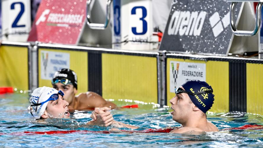 DOPPIETTA BARBOTTI. Assente Alberto Razzetti, a riposo dopo le fatiche di questi giorni, lo scettro dei 400 misti se lo prende un super Jacopo Barbotti che firma la doppietta dopo il successo nei 200. Bellissima e coraggiosa la prova del 20enne di Legnano - tesserato per CC Aniene - che nuota il primato personale in 4'16"01, demolendo il 4'20"63 stampato al Settecolli 2025 e balzando dal trentesimo al settimo posto tra i performer. "Se mi avessero detto alla vigilia di questi assoluti che avrei vinto due volte e ottenuto due pass per gli Europei non ci avrei creduto - racconta l'atleta seguito da Giorgio Guglielmi - Devo ancora realizzare quello che è successo. Quest'anno mi sto dedicando di più al nuoto, pur non abbandonando gli studi universitari, e sto ottenendo risultati insperati". Completano il podio, due portacolori della Livorno Aquatics, Emanuele Potenza in 4'17"20 e Simone Spediacci in 4'17"33.