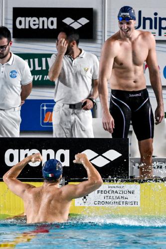 SUPERGREG CHE ORGOGLIO! Entra in scena l'ultimo giorno e nella penultima gara e da fenomeno non delude le aspettative, malgrado non abbia preparato questa gara concentrandosi unicamente nelle acque libere. Gregorio Paltrinieri, rientrante alle competizioni in piscina, s'impone con esperienza e determinazione nei 1500. Il campione olimpico, trimondiale e trieuropeo - tesserato per Fiamme Oro e Coopernuoto, allenato al Centro Federale di Ostia da Fabrizio Antonelli - nuota in 14'58"03 al termine di una vera battaglia con Marcello Guidi (Fiamme Oro/RN Cagliari), al personale in 14'58"30, ed Ivan Giovannoni (Esercito/Aurelia Nuoto), terzo in 14'59"21. "Sono in pieno carico e ho deciso solo pochi giorni fa di nuotare agli assoluti - racconta il 32enne di Carpi - Ho voluto staccare un po' dalla routine e avevo bisogno di disputare una gara tra le corsie propedeutica al percorso in acque libere. Oggi è stata una bella battaglia con Marcello ed Ivan che praticamente sono miei compagni d'allenamento e con cui ho un rapporto quotidiano. Il focus in questo momento della mia carriera sono le acque libere: fino a qualche anno fa disputavo il fondo per staccare dalla piscina; adesso si è tutto invertito. Sto pensando già alle prossime due tappe della World Cup a Ibiza e poi a quella in Sardegna a Golfo Aranci".