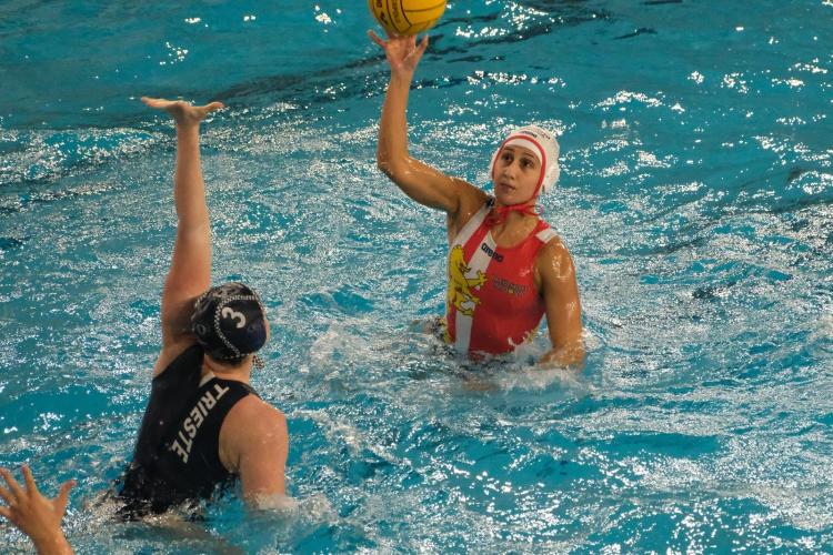 LA PARTITA VISTA SU RAI SPORT. Una bella costruzione patavina viene conclusa in rete da Bacelle dopo ventisei secondi dall'avvio. È il preludio ad una gara che vedrà Bacelle protagonista. La Pallanuoto Trieste, che non puo contare sulla squalificata McDowall, pareggia con il rigore trasformato da De March dopo che una palla millimetrica di Sparano per la fuga portata avanti da Klatoswki veniva interrotta dal fallo di Bozzolan. Le giuliane operano il sorpasso con un delizioso pallonetto griffato da Cergol. Il Plebiscito Padova ribatte con Bacelle che traccia la diagonale del 2-2 e poi torna avanti grazie alla beduina di Pasqualin (3-2). La bordata secca della triestina Klatowski (3-3) in superiorità numerica ristabilisce l'equilibrio a fil di sirena.