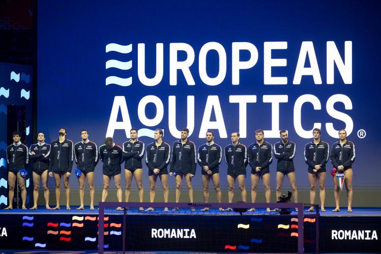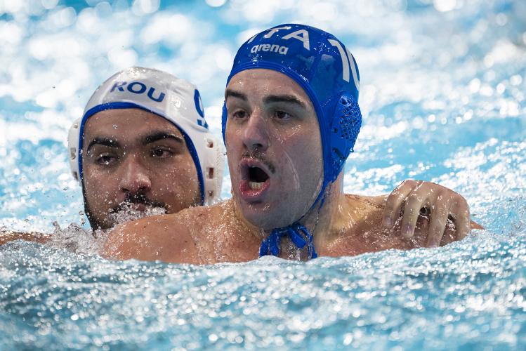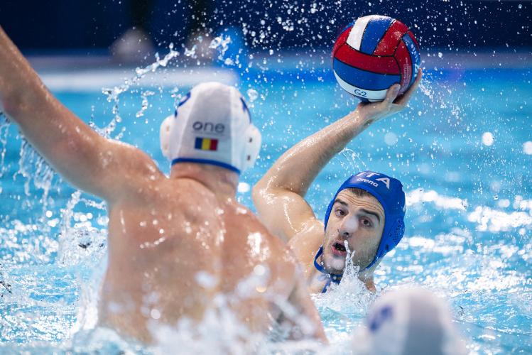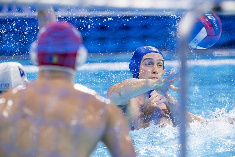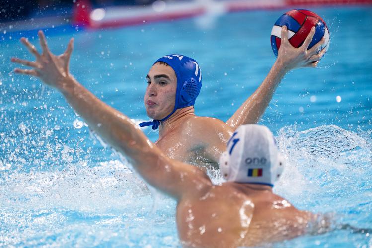 Note: parziali 1-5, 3-4, 0-4, 2-7. Usciti per limite di falli Neamtu (R) e Gheorghe (R) nel quarto tempo. Superiorità numeriche: Romania 2/12 + e Italia 9/11 + 2 rigori. Dragusin (R) para un rigore a Del Basso a 5'35" del quarto tempo sul risultato di 5-19 per l'Italia. De Michelis (I) subentra a Del Lungo a 3'40" del quarto tempo. Dragusin (R) subentra a Tic a 3'40" del quarto tempo.