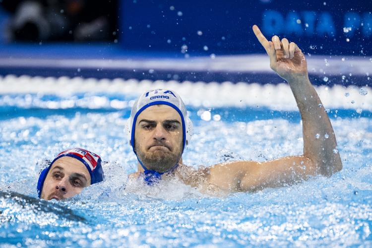 LA PARTITA. I primi sette in vasca sono Del Lungo, Di Somma, Dolce, Ferrero, Iocchi Gratta, Cassia e Alesiani. Restano in tribuna i due numeri 15: Mattia Antonucci e Andrija Basic. Subito Del Lungo e Bijac in evidenza con due paratone. Alla prima occasione, dopo 1’40”, Dolce la sblocca. Alla terza superiorità numerica Fatovic fa 1-1. C’è l’uomo in più anche per l’Italia ma Alesiani la schiaccia addosso a Bijac. Quarto uomo in meno e costringiamo Bukic all’errore. Svanisce anche il secondo uomo in più. Poi però ripartiamo bene e Alesiani si porta palla avanti e supera difensore e portiere (2-1). Di nuovo in meno (già la quinta espulsione temporanea in sei minuti di gioco) e subiamo la rovesciata vincente di Buric. Ripartiamo cattivi, guadagnamo penalty che Condemi trasforma in oro. Ma dietro difendiamo sempre in inferiorità numerica e diventa sempre più dura. Pareggia Zuvela, abbiamo subito l’ocasione per tornare avanti ma Bijac devia in angolo il tiro di rigore di Balzarini. Nel finale di tempo Del Lungo è prodigioso con doppia parata su Lazic e Buric (3-3).