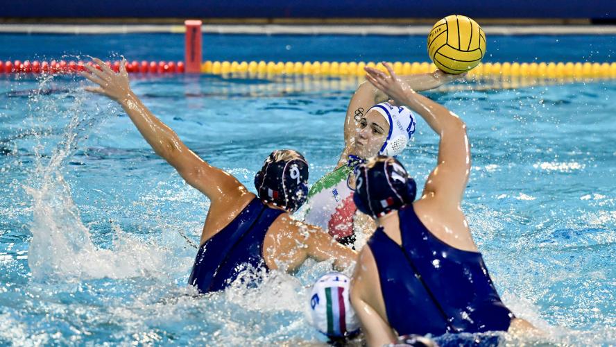 LA PARTITA. Il Setterosa apre le danze con una superiorità a bersaglio: da posizione uno Bacelle serve Gant sul secondo palo per l'1-0. La stessa Bacelle si procura poi un rigore che Ranalli non sbaglia. Marletta d'esperienza segna il 3-0 in parità numerica. Il ct Silipo chiama e vince il challenge per un fallo da rigore di Benlekbir: si ripete ancora Ranalli. Sull'assist di Bianconi, Marletta traccia la diagonale del 5-0. Ranalli con freddezza e in contrattacco segna il 6-0. Bouloukbachi dai sei metri sblocca la Francia dopo 6.30. Azzurre a segno ancora con Papi; Giustini su rigore battezza Lefebvre per l'8-1 al primo intervallo.
