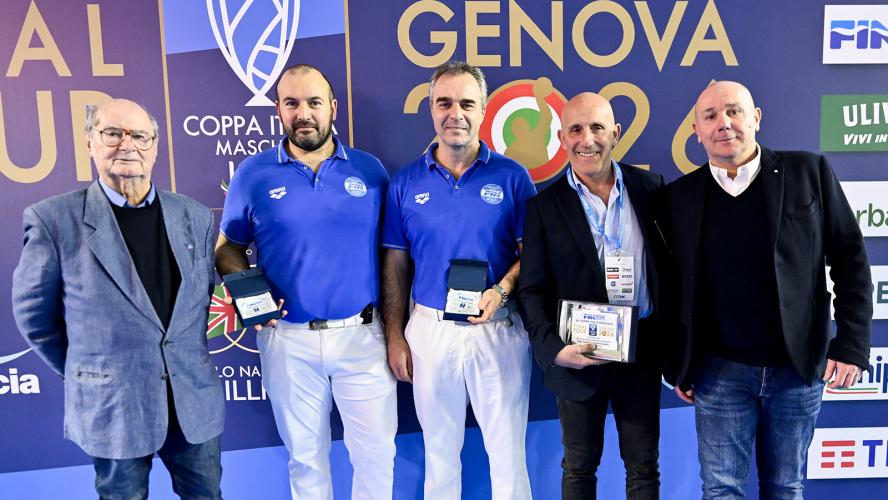 CAMPAGNA INCONTRA I GIOVANI DELLA LIGURIA E GLI ALLENATORI. Prima dell'inizio della finale Pro Recco Waterpolo-Banco Bpm RN Savona il commissario tecnico del Settebello Alessandro Campagna ha incontrato i giovani delle rappresentative liguri coordinati dal tecnico federale Aleksandra Cotti e dal responsabile tecnico federale della Regione Liguria Alessandro Cavallini. Successivamente Campagna ha tenuto un clinic con gli allenatori della Liguria e non solo sulla formazione dei giocatori e gli aggiornamenti del regolamento.