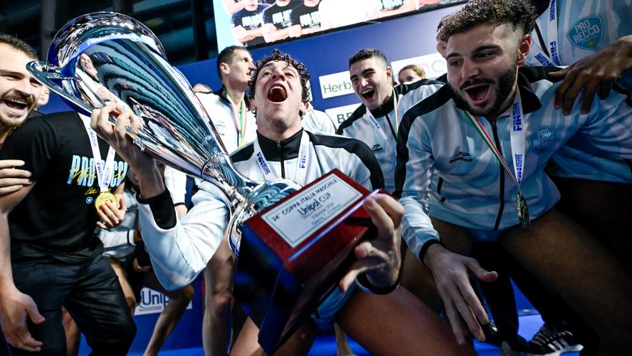 La trentaquattresima Coppa Italia è della Pro Recco Waterpolo, che alla piscina Sciorba di Genova trionfa nella Unipol Cup. I biancocelesti - squadra più blasonata d'Europa con 11 Champions League e d'Italia con 37 scudetti - alzano al cielo il trofeo per la diciannovesima volta, battendo 15-7 la Banco BPM RN Savona nel remake della finale del 2025, quando vinsero 11-5 a Napoli. La Pro Recco, in un match di altissimo livello, conduce 8-4 all'inversione di campo e 9-5 dopo tre quarti di gara; poi lo strappo decisivo in avvio di ultimo tempo con il gol in sequenza di Irving e Francesco Condemi che valgono il determinante 11-5 a cinque minuti.