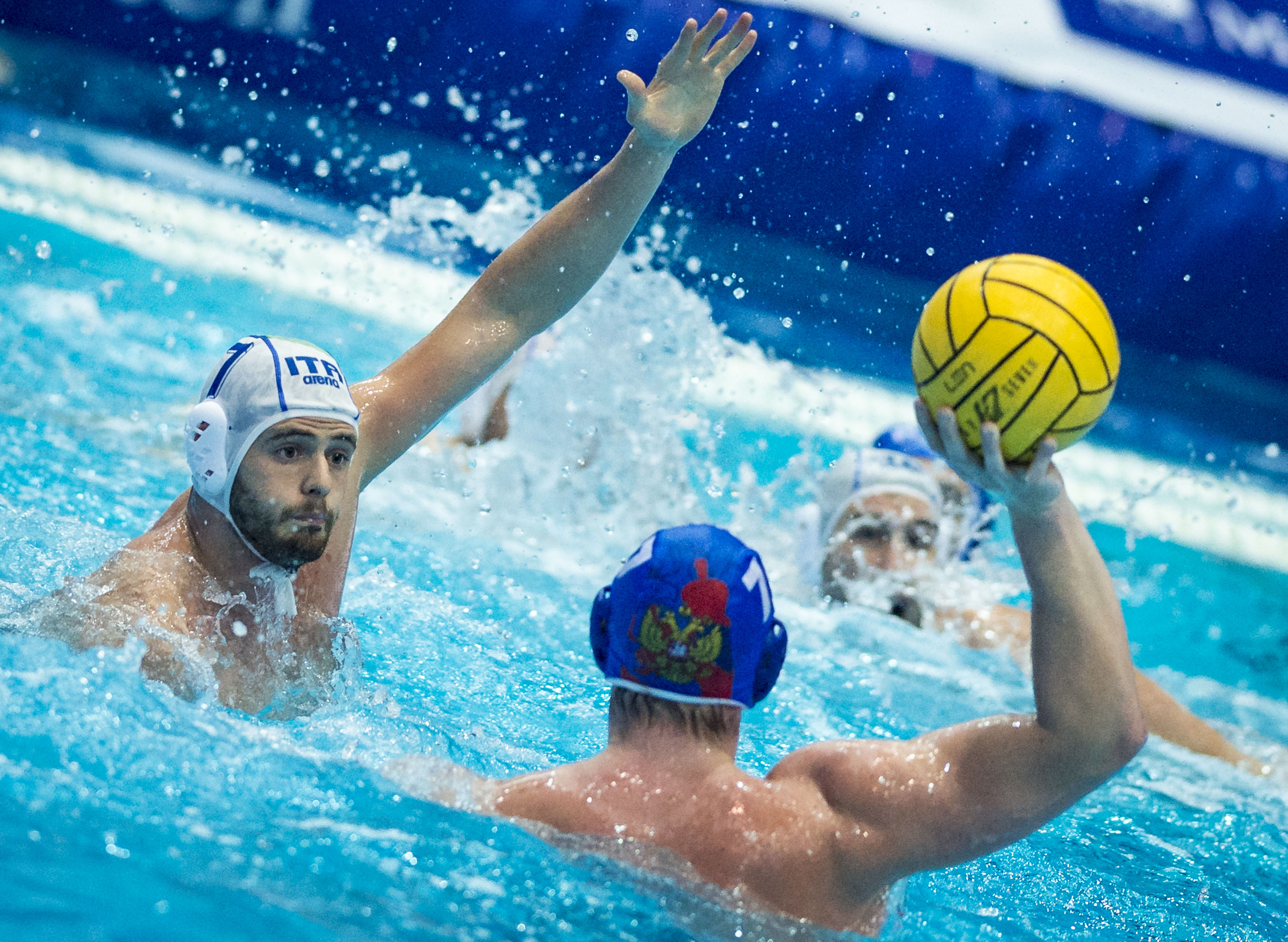 Cronaca di Italia-Russia 15-10. Nei tredici rientra Damonte ed esce Cannella. Azzurri colpiti a freddo: il capitano Lisunov sorprende Del Lungo dopo 25 secondi, alla prima superiroità numerica. Trascorre un minuto esatto e Echenique pareggia in controfuga. Il Settebello accende il motore, Molina e capitan Figlioli per il +2, ma la Russia è tosta: Merkulov dimezza lo sventaggio, Lisunov e Dereviankin lottano al centro come leoni. Il giro palla è meno veloce rispetto alla partita con il Montenegro ma l'attenzione con l'uomo in più è maggiore (4/6 dopo 16 minuti) e nel secondo tempo gli azzurri allungano 8-4, lanciati di nuovo da Echenique e col sigillo di Bodegas che schiaccia tra gli applausi. La Russia è indomita e gioca un terzo tempo tutto muscoli e cuore rosicchiando un gol agli azzurri. Figlioli lascia ad Echenique il primo dei due rigori (tripletta per l'italo-argentino) e poi va a siglare una doppetta. Nell'ultimo tempo c'è spazio anche per Nicosia che prende il posto di Del Lungo e mantiene la porta inviolata per sette minti, parando anche il rigore a Merkulov. Poker degli azzurri che dilagano con Molina (rigore), Casasola in più, Damonte su assit di Figlioli e Presciutti ancora con l'uomo in più. I due gol russi negli utlimi cinquanta secondi non fanno male.