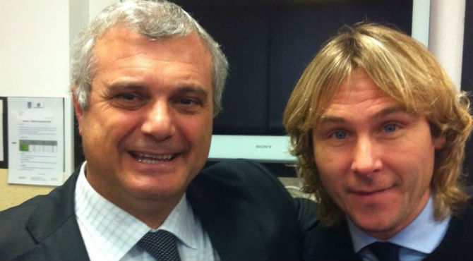 Nel pomeriggio il cittì del Settebello Alessandro Campagna è stato ospite della Juventus FC al centro di allenamento di Vinovo. Nelle foto Campagna insieme al membro del CdA Pavel Nedved e all'allenatore Antonio Conte.
