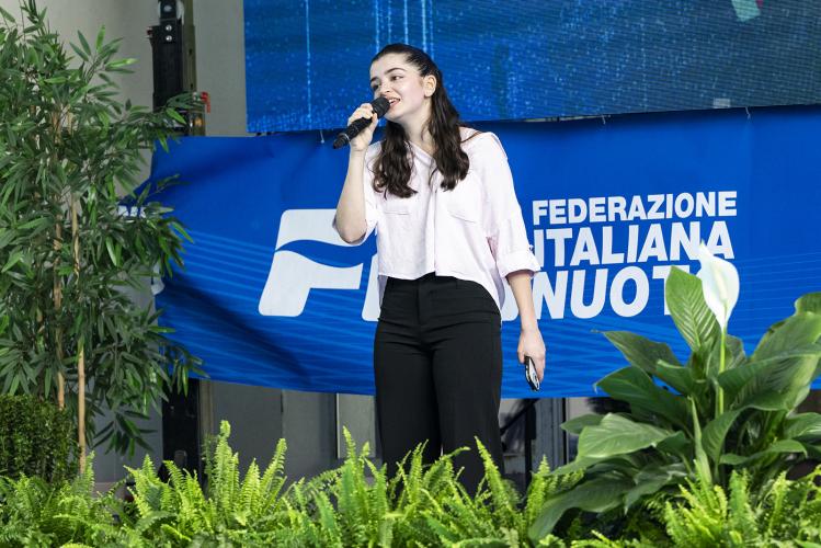 Tutti in piedi a cantare e applaudire l’iniziativa della Federazione Italiana Nuoto e del suo Comitato Regionale Piemonte. Tra le personalità intervenute il presidente della FIN Piemonte Gianluca Albonico e la Vice Presidente del CONI regionale Isabella Dalbesio.