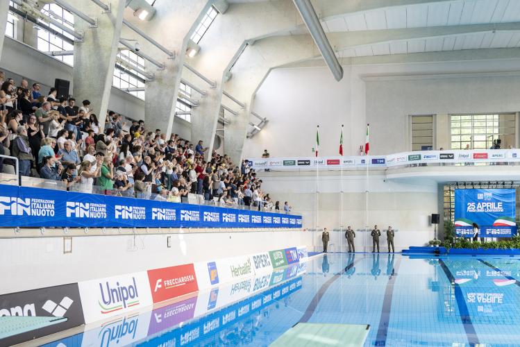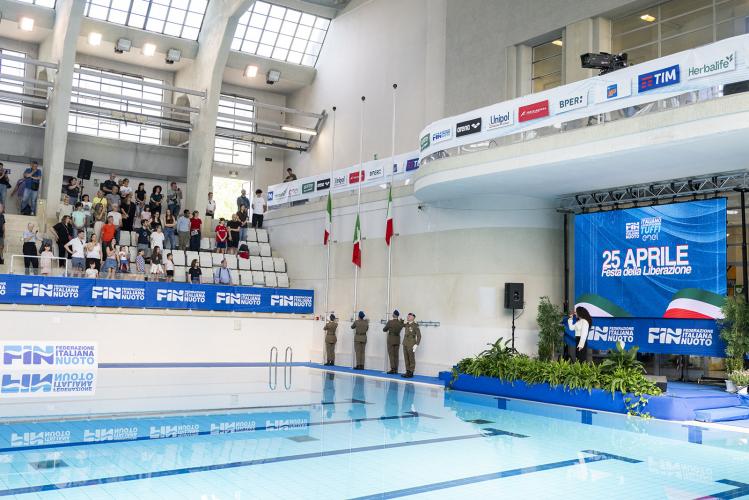 Alla Monumentale di Torino è festa doppia. Lo sport e la storia del nostro Paese si fondono insieme in un binomio essenziale, di cui non si può fare a meno. Nel giorno della Festa della Liberazione, in cui si celebra l’anniversario del 25 aprile 1945, quando fu proclamata l’insurrezione di tutti i territori nazionali ancora occupati e di fatto la Liberazione d’Italia, gli Assoluti Enel si fermano per alcuni minuti, la piscina si trasforma in teatro e prima delle finali tutti insieme festeggiamo l’Italia.