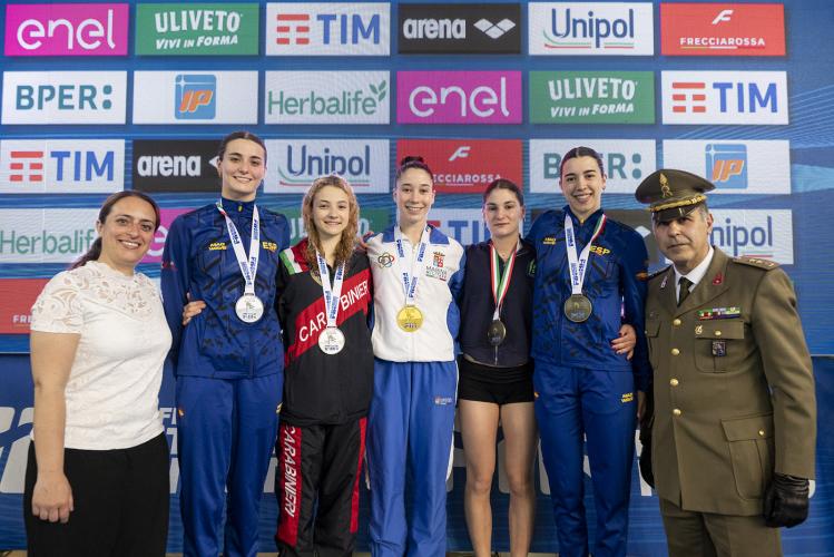 Rivincite immediate di Chiara Pellacani e Giovanni Tocci. Perché i veri campioni fanno così. Chiara - dopo la finale dei tre metri persa all’ultimo tuffo - e Giovanni - che era finito solo quarto dal metro e aveva compromesso l’eliminatoria con un tuffo nullo - ruggiscono nel giorno della Festa della Liberazione. Chiara Pelacani, allenata da Tommaso Marconi per Fiamme Gialle e MR Sport F.li Marconi, si prende lo scettro del metro con 269.55, mentre il capitano azzurro Giovanni Tocci, seguito da Bendetta Molaioli per Esercito e AQA Cosenza, conquista il titolo italiano dal trampolino olimpico con 441.55 punti. Sarah Jodoin Di Maria capovolge il risultato del preliminare, che la vedeva quarta con qualche difficoltà, scavalca le spagnole e da brava campionessa d'Europa va a vincere la finale della sua piattaforma con 313.80.