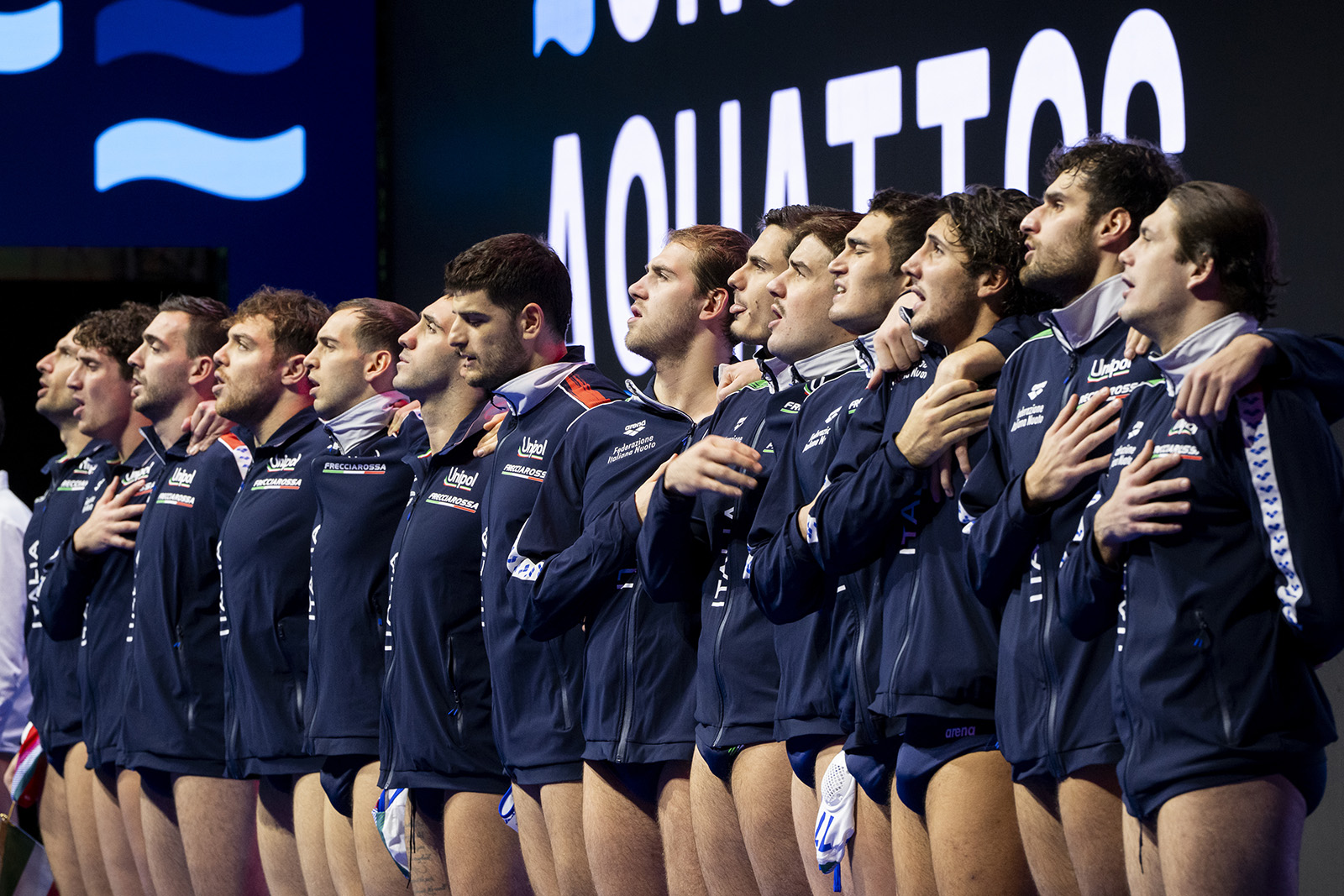 Marco Del Lungo, capitano – 1. “È stata una partita di squadra giocata veramente bene sia in difesa che in attacco. Con volontà, con gioia e con coraggio. Questa è la vittoria corale di una squadra che vuole crescere e vuole arrivare veramente in alto. Non c'è alcun dubbio. È stata una prestazione collettiva, un unico pensiero, un'unica voce. È così che l'Italia dimostra sempre di essere tra le migliori d'Europa. Adesso dobbiamo recuperare per la prossima partita perché ci sarà la Serbia, ci sarà un gran bel pubblico e soprattutto andiamo avanti per la nostra strada. Dedichiamo questa vittoria a Luca Mamprin, amico e fisioterapista del Settebello, nel quinto anniversario della sua prematura scomparsa. Tutto il gruppo azzurro lo ricorda con affetto e rivolge un pensiero ai suoi cari".