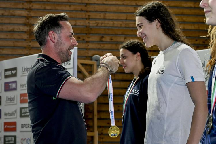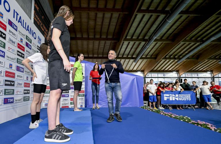 200 RANA VELOCI E DA RECORD. Apertura di programma con i 200 rana che regalano tanti volti nuovi, per una densità che in ottica futura non può che far sorridere il direttore tecnico Cesare Butini e il responsabile delle squadre nazionali giovanili Marco Menchinelli. E soprattutto portano in dote il primo record della manifestazione. Lo stabilisce una strepitosa Lucrezia Mancini tra le cadette. La 18enne di Foligno - tesserata per Spoleto Nuoto e seguita da Piero Santarelli - nuota un super 2'21"78, togliendo quasi due secondi al 2'23"54 registrato da Benedetta Pilato nel 2022 e a un secondo e mezzo al personale di 2'22"41 siglato agli Assoluti nel mese di dicembre. Completano il podio Marta Taddei (H. Sport) in 2'21"78 e Gaelle De Martinis (Caravaggio SV Aqua) in 2'27"51.